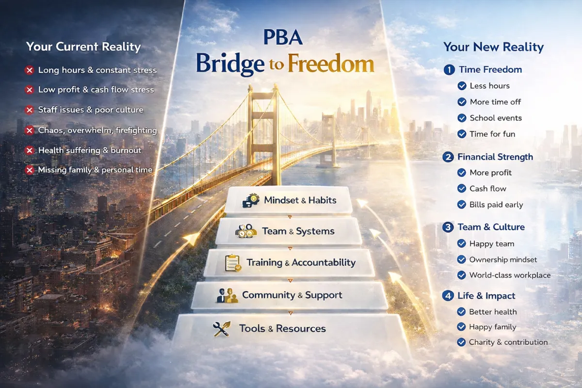 PBA shows business owners how to replace chaos with systems, strong teams, and sustainable profit —